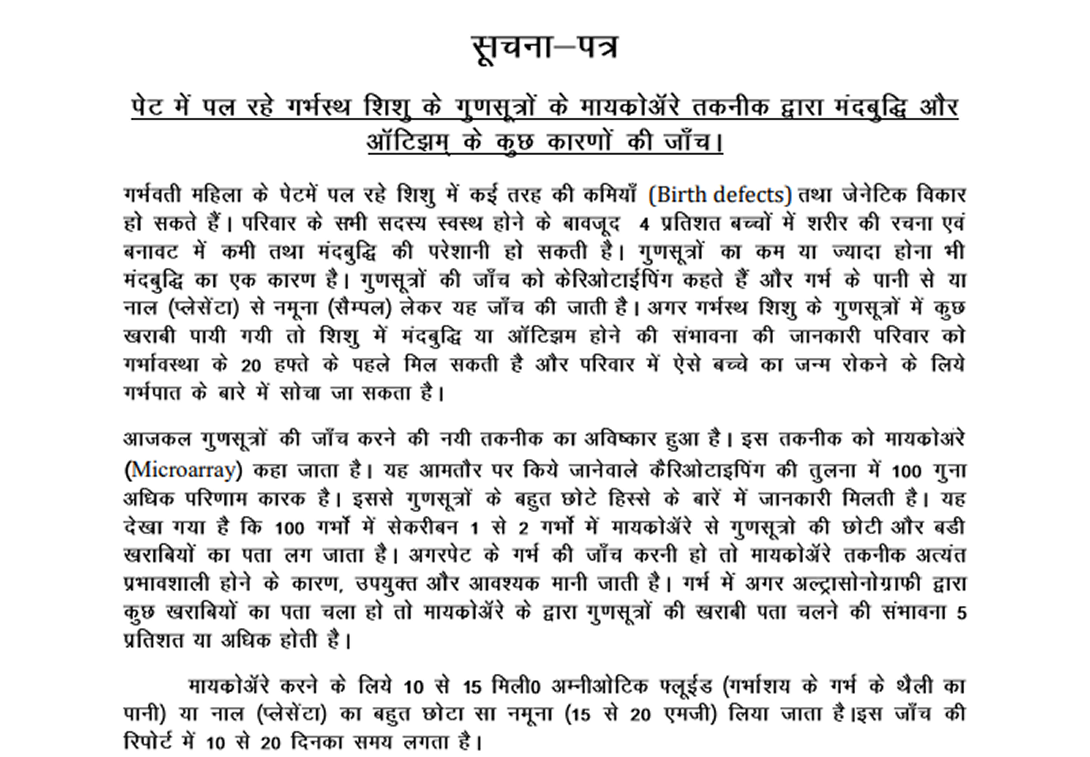 A simple Hindi guide on prenatal diagnosis and understanding Down Syndrome.