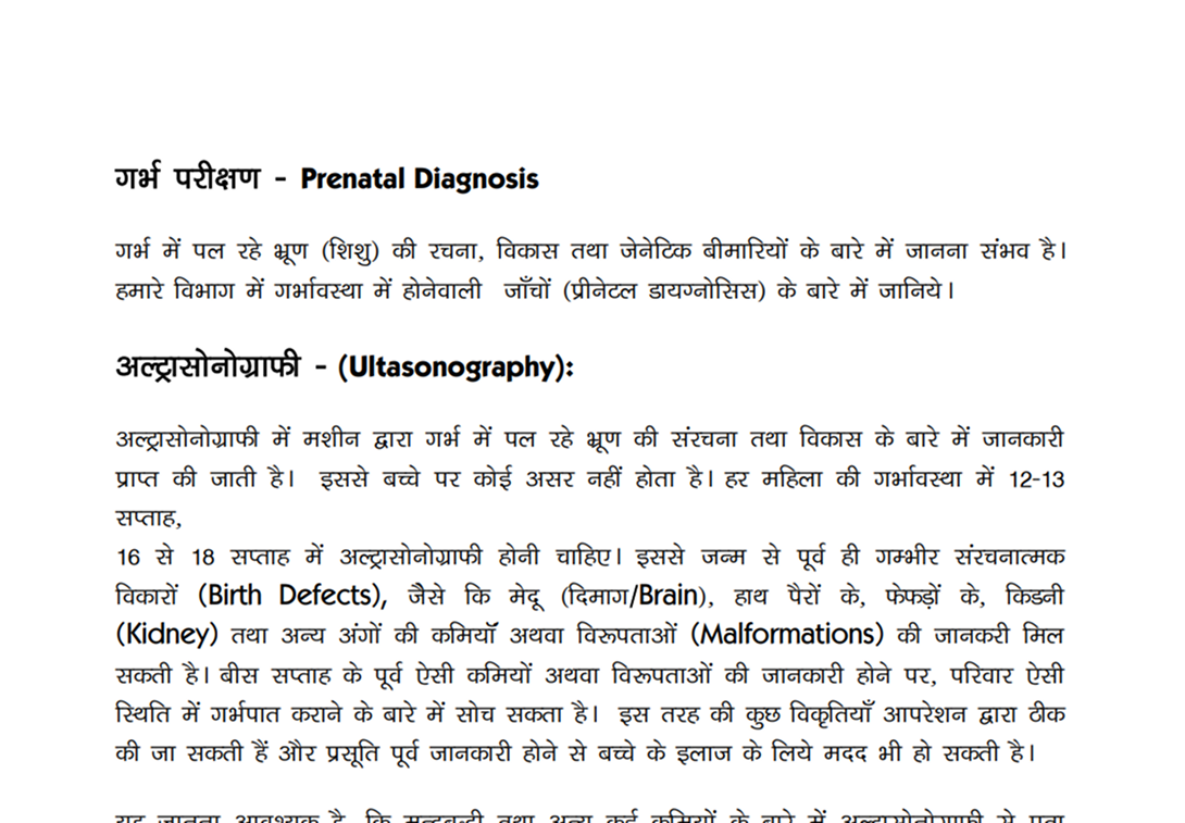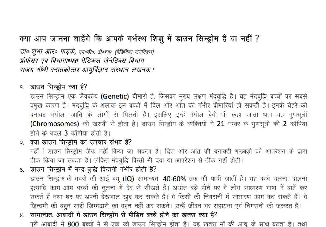 A simple Hindi guide on prenatal diagnosis and understanding Down Syndrome.